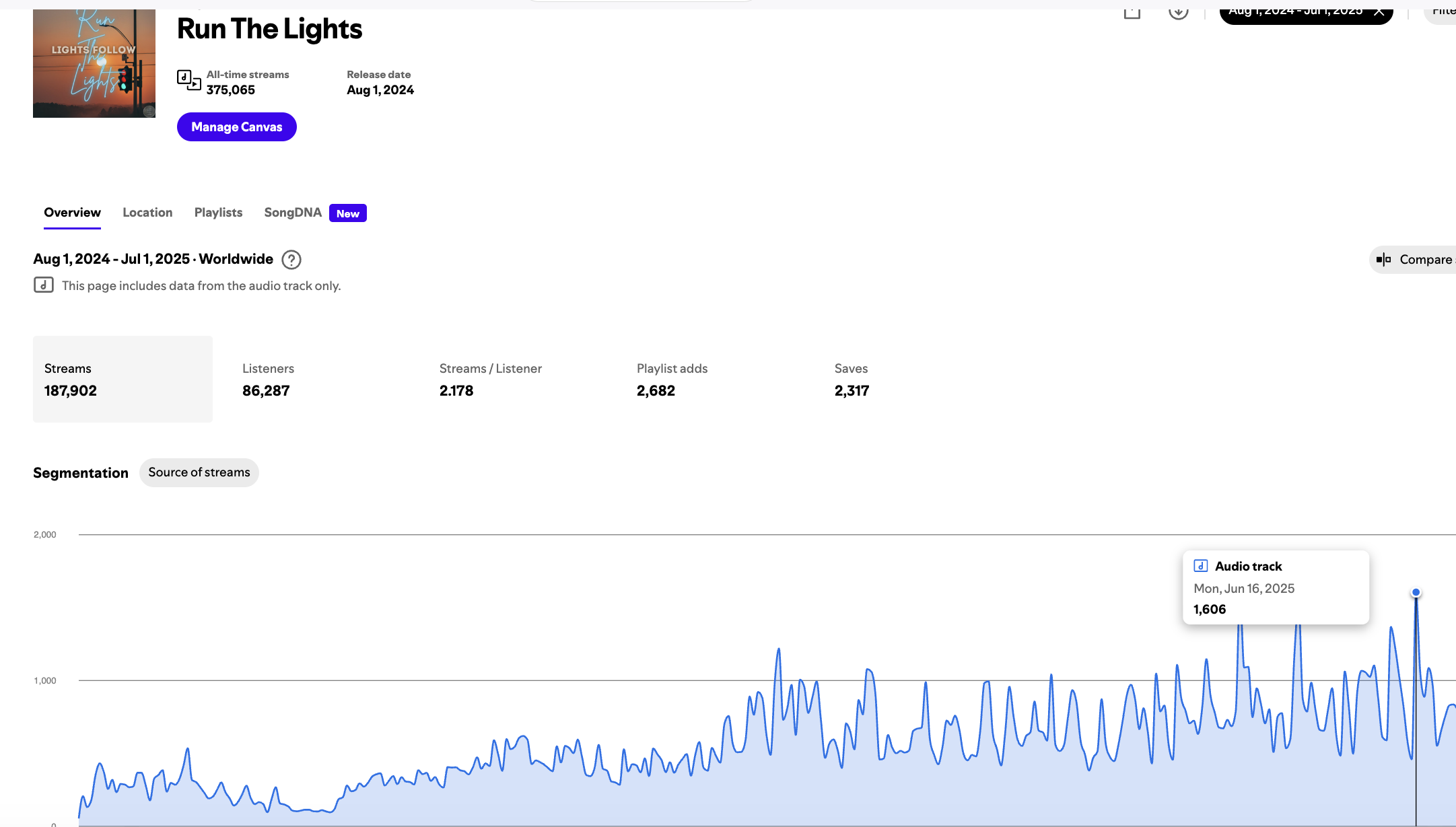 Instead of relying on other playlists, we build your own. Grow followers who consistently stream your music—lifting your entire catalog over time.